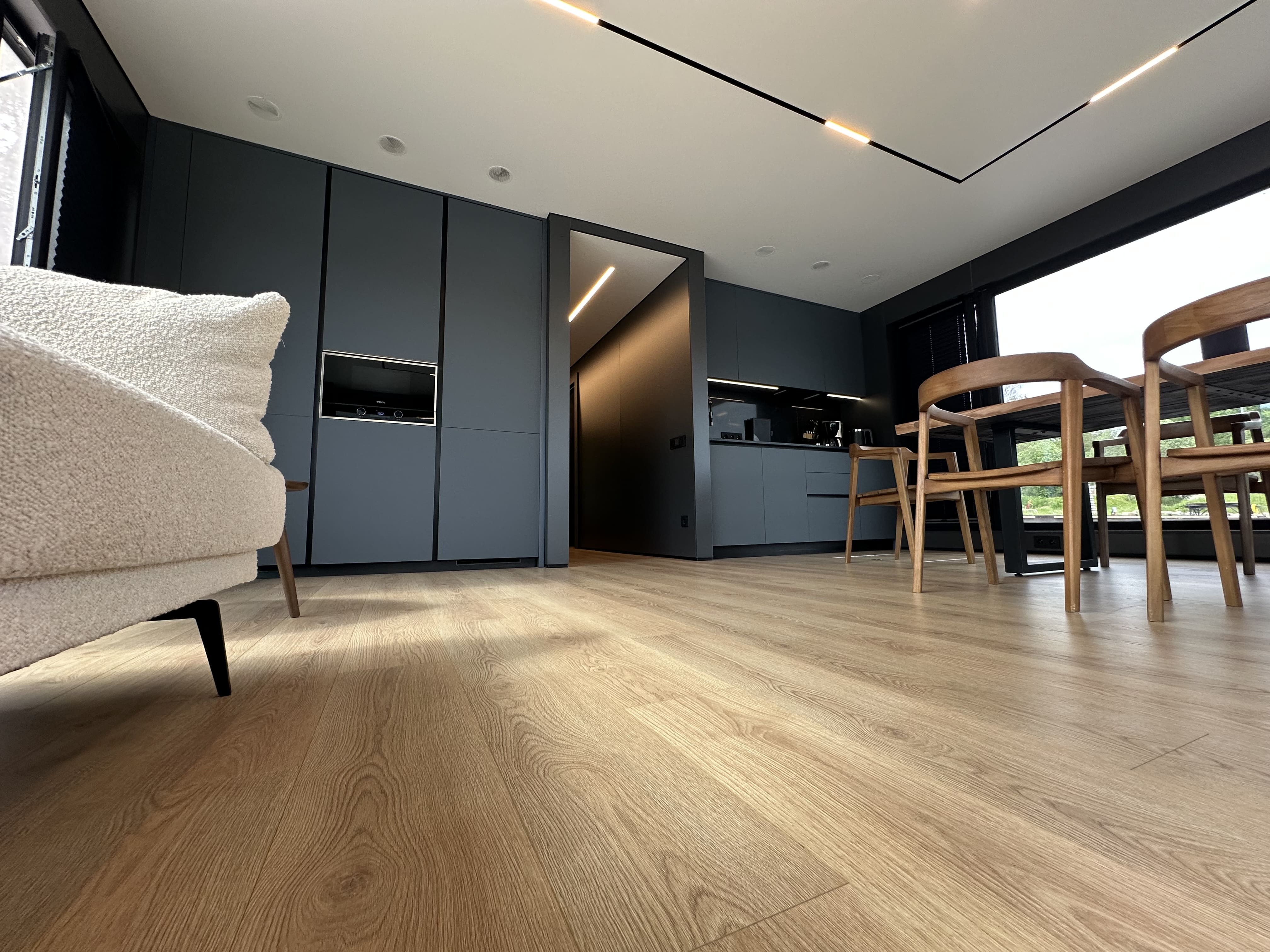 До появления ламината Stone Floor на минерально-каменной плите плитка была единственными беспроигрышным вариантом для тех, кто в доме обустраивал систему «теплый пол». Все остальные напольные покрытия имеют низкотемпературный лимит до + 29 С и требования исключительно поступательного нагрева. Заметьте, это условия, которые практически невозможно реализовать на практике: водяной пол всегда прогревается неравномерно из-за чего температуру термостата часто устанавливают выше, а электрический и инфракрасный прогреваются одномоментно и по всей площади, но в момент включения имеют выброс тока и резкое повышение температуры, которое может быть критичным для низкотемпературного покрытия. Ламинат Stone Floor mspc типа – это единственный пол, который, точно также, как и плитка, выдерживает высокие температуры нагрева (до + 70 С) без признаков деформации и отлично совместим с теплым полом, который используется в качестве единственного источника отопления. По этой же причине его очень часто используют в новостройках, где трубы отопления закладываются в стяжке пола и могут быть причиной деформации напольного покрытия.